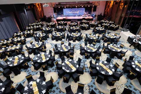 According to the event the main hall can be divided in 4 halls, and the set up of the halls is arranged upon the request of clients